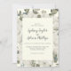 Cet hiver fleuri sur faire-part de mariage décontracté d'ivoire est parfait pour un mariage élégant. Le design simple présente des fleurs blanches, de la verdure hivernale et des feuilles d'eucalyptus, dans un style champêtre moderne.