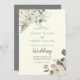 Cette faire-part de mariage florale d'hiver en ivoire est parfaite pour un mariage élégant. Le design simple présente des fleurs blanches, de la verdure hivernale et des feuilles d'eucalyptus, dans un style champêtre moderne.