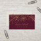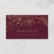 Ce carte de visite doré à fleurs bordeaux et doré est parfait pour un propriétaire de petite entreprise, consultant, styliste et plus encore ! Le design boho moderne présente un arrangement fantaisiste de fleurs dessinées à la main, de feuilles et de botaniques sur un arrière - plan bordeaux. Remarque : Ce design ne comporte pas de véritable feuille d'or. C'est un graphisme de haute qualité fait pour ressembler à du papier doré.