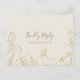 Cette carte postale RSVP pour la demande de chansons dorées à la crème fleurie est parfaite pour un mariage élégant. Le design boho moderne présente un arrangement fantaisiste de faux feuilles d'or dessiné à la main, de feuilles et de botaniques sur un arrière - plan crème. Créez votre liste d'invités mariages et votre liste de chansons de piste de danse tout à la fois ! Cette carte postale de réponse mariage demande si les invités pourront assister à votre mariage, et aussi quelle chanson les amènera à danser.