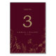 Ce bordeaux floral doré et numéro de table doré est parfait pour un mariage élégant. Le design boho moderne présente un arrangement fantaisiste de fleurs dessinées à la main, de feuilles et de botaniques sur un arrière - plan bordeaux. La carte s'imprime à l'avant et à l'arrière (double face). Ajoutez chaque numéro de table dont vous avez besoin à votre panier individuellement. Remarque : Ce design ne comporte pas de véritable feuille d'or. C'est un graphisme de haute qualité fait pour ressembler à du papier doré.