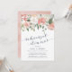 Élégante et moderne invitation à la répétition florale présente un bouquet de roses pastel pastel, des pivoines et des hydrangées dans les tons rose roux, pêche et crème, avec feuilles botaniques verdoyants et eucalyptus. Personnalisez avec vos détails de dîner de répétition en lettrage bleu fumé élégant accentué par la calligraphie de style manuscrit.