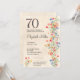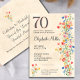 Floral élégant 70e anniversaire invitation fleurs sauvages 70. Célébrez une étape spéciale avec cette élégante invitation de 70e anniversaire, conçue pour une femme merveilleuse. Doté d'un audacieux "70" en haut et d'un design floral délicat dans des teintes douces d'aquarelle, cette invitation allie élégance et charme. Parfait pour rassembler des êtres chers pour honorer une occasion vraiment mémorable. Ajoutez tous les détails de votre événement pour créer un souvenir unique et élégant. Bon appétit !