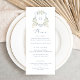 Floral Elegant Dusty Bleu Blanc Mariage Crest Menu