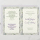 Programme de mariage plié avec design floral et modèle de la cérémonie d'église longue. Des fleurs d'hydrangée multicolore avec des feuilles font d'un côté un motif arrière - plan. Une fois pliées, ces pages seront à l'avant et à l'arrière du programme. Les couleurs sont vert pâle et lavande. Le script moderne est utilisé en violet pour les noms du couple sur une grande esperluette. Au verso du journal figurent les informations sur la cérémonie à gauche et la liste des participants à droite. Tout le texte est un exemple et non un véritable ordre de cérémonie! Modifiez le libellé au besoin et ajoutez/supprimez l'espacement pour tenir le texte. Si votre cérémonie sera beaucoup plus simple, peut-être agrandissez le texte, ou comme moi pour aider.