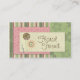 Parfaits pour un shopping à fleurs ou une boutique éclectique, ces cartes de visite colorés de Kustom By Kris présentent des rayures déchiquetées, des pois amusants et des imprimés floraux.Des fleurs uniques de vert, rose, marron et orange accentuent l'avant et le dos. Ajoutez votre nom d'entreprise à l'avant et votre slogan ou des informations supplémentaires à l'arrière avec vos coordonnées. Cliquez sur le bouton Personnaliser pour modifier la taille des polices et déplacer du texte.