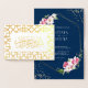 Invitation vos invités avec cette belle faire-part de mariage pliée avec un cadre floral magnifique contre un arrière - plan bleu marine à l'intérieur et véritable feuille d'or motif géométrique islamique avec 'Bismillah' en calligraphie arabe à l'extérieur. Ajoutez simplement les détails de votre événement sur ce modèle facile à utiliser pour en faire une invitation unique.