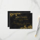 Gold Fabuleux Anniversaire RSVP. Fleurs étincelantes élégantes sur damas noir. Remarque : Toutes les images plates !