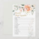 Ce design est doté d'une aquarelle illustrant le rose rose abricot et le feuillage verdoyant - Baby shower Word Scramble Game. Sur le dessus de la carte - l'effet or confetti. Débrouillez les mots de bébé. La Clé De Réponse : Poudre De Bébé, Bouteille, Couverture, Diapeurs, Berceuse, Siège De Voiture, Thermomètre, Shampooing, Pacifier, Bassinet, Haute Chaise, Moniteur De Bébé, Poussette, Pépinière