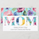 Une élégante carte de la Fête des Mères avec un design de lettrage floral pour le mot "Maman", dans un style aquarelle sur un arrière - plan turquoise. Personnalisez avec votre propre salutation et nom(s) pour une touche finale individuelle.