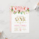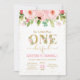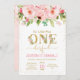 Sweet little miss une invitation de premier anniversaire avec principalement des arrangements floraux roses et quelques faux mots de feuille d'or et la ceinture.  Idéal pour quelqu'un qui aime l'art de l'aquarelle audacieuse et idéal pour une petite fille à venir fête de premier anniversaire.