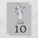 NUMÉRO DE TABLE DE RÉCEPTION Un élégant pot Mason rempli de fleurs aux couleurs de violets clairs et foncés avec des fleurs sauvages de marguerites blanches. Un Arrière - plan gris argenté est défini. Si vous avez des questions sur ce design ou désirez un changement de couleur, envoyez-moi un courriel à paula@labellarue.com Vérifiez aussi que les cartes de Mariage, INVITATION, RSVP, RÉCEPTION et CHAISES d'INVITATION correspondent !