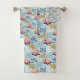 Des fleurs pop art colorées et stylisées aux accents bleu, vert et noir sur un arrière - plan bleu ciel confèrent un ensemble de serviettes moderne et élégant.