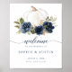 Floral Navy Citrouille Affiche de bienvenue Mariage de automne bleu. Poster de bienvenue du Mariage Floral Bleu