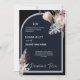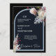 Faire-part de mariage floral noir élégant. Ce Faire-part de mariage floral élégant et élégant présente de magnifiques fleurs sauvages aquarellés peints à la main, disposés dans un joli bouquet. Recherchez les éléments correspondants dans la collection de Mariages Fleurs sauvages Black Boho.