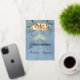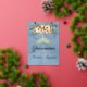 Spring Floral bouquet and gold tiara on a pastel blue background embellish the front of this folded card invite. The inside features a placeholder for a photo and the details of the event.