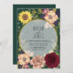 Elégant, moderne, audacieux, boho, botanique, bordeaux fleuris, rose pêche et vert émeraude faire-part de mariage avec script de calligraphie tendance.