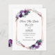 Enregistrez le cadre géométrique Date Purple Floral pour votre carte de budget de jour spécial faire-part. Cela fait partie de la collection de mariage violet et de douche nuptiale avec ce design si vous êtes un qui aime à assortir vos invitations, fournitures de fête et accessoires cadeaux. Pour une personnalisation plus avancée, cliquez sur le bouton "Personnaliser" ci-dessus. CONSEIL : éléments correspondants disponibles