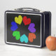 Cette formidable lunchbox métallique présente l'image numériquement d'un cercle de coeurs d'amour. Chaque coeur est une couleur différente de l'arc-en-ciel. Les coeurs rouge, orange, jaune, vert, bleu, indigo et violet sont une façon ludique et éclatante d'exprimer votre amour pour un petit ami, une petite amie, un mari ou une femme. L'arrière - plan est noir pour créer un impact maximum.