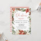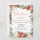 Floral Red Company Noël Invitation Fête de Noël Invitation à la fête de travail florale avec un arrangement floral avec quelques Poinsettia ou étoile de Noël, cônes de pin, roses blanches et feuillage d'hiver.