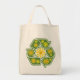 Promote réutilisant la conscience et l'environnement avec ce sac fourre-tout organique mignon qui comporte un floral-orienté réutilisent le symbole entourant une marguerite jaune.