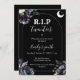Mourn the end of your 20s in style. This “R.I.P. Twenties” 30th birthday funeral invitation sets the tone for a dark-humor celebration with a deep black backdrop, arched memorial frame, crescent moon, and moody florals. Elegant serif and modern script type pair to announce the “loss” of youth while keeping the vibe chic. Personalize all text (name, date, time, location, RSVP) directly in Zazzle for a perfectly on-theme 30th birthday party.