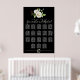 Élégant tableau de 18 tables. Beau et facile signe do-it-yourself mariage dispose d'une rose blanche poy en haut. En bas se trouve une couronne de rose blanche avec votre date de mariage. Les noms des couples mariages sont écrits dans une police de script sans souci. Le texte blanc et le rose sont époustouflants contre l'arrière - plan noir. Frame it (les cadres sont disponibles sur Zazzle) à utiliser à votre réception - puis emmenez-le à la maison comme un souvenir de ceux qui ont assisté à votre mariage. Ce tableau de sièges fait partie de la collection Rose antique qui contient de nombreux modèles mariages do-it-yourself pour créer une cérémonie mariage personnalisée et une réception. Vous devriez voir un lien vers cette page. Si vous n'avez pas besoin d'aide pour un article, veuillez me contacter.