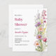 Un arrière - plan blanc chic. Décoré d'un fleur sauvage rose, violet, jaune. Personnalisez et ajoutez le nom de la mère à être et les détails de la fête. 1 feuille = 1 invite imprimé bord à bord.