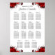 Floral Rouge & Blanc 15 Tables Mariages Tableau de