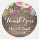 Fleur rose Florale Rustique Merci Mariage Favoriser Stickers. Arrière - plan rustique en bois. Vintage Country Retro. Customisez avec vos Noms et Date.
