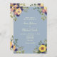 Elégant, moderne, rustique, botanique, bleu poussiéreux faire-part de mariage aux fleurs vertes aquarelles, tournesols jaunes et verdure.