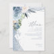 Une police de signature manuscrite associée à des cadres géométriques, des arrière - plans brillants et des fleurs luxuriantes sont utilisés dans cette collection pour donner un ton chaleureux et intime à votre mariage. Le menu mariage présenté ici, avec son agencement floral d'angle en bleu et crème poussiéreux, est un élégant arrière - plan pour ajouter vos propres sélections de menu, noms et date mariage. Recherchez ID889 pour voir tous les produits de ce jeu de mariages.