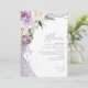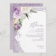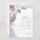Une police de signature manuscrite associée à des cadres géométriques, des arrière - plans brillants et des fleurs luxuriantes sont utilisés dans cette collection pour donner un ton chaleureux et intime à votre mariage. Le menu mariage présenté ici, avec son agencement floral d'angle en mauve, lavande et crème, est un élégant arrière - plan pour ajouter vos propres sélections de menu, noms et date mariage. Recherchez ID889 pour voir tous les produits de ce jeu de mariages.