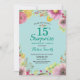 Floral Surprise 15e anniversaire Invitation pour les femmes. Aquarelle Florale, Turquoise Aqua Turquoise Arrière - plan. Pour plus de personnalisation, cliquez sur le bouton "Customiser" et utilisez notre outil de conception pour modifier ce modèle.