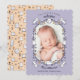 adorable petit chatte adorable chatons thème faire-part de naissance conception d'invitation. Notre design comprend une belle floraison organique et un feuillage qui encadre la photo bébé. Des fleurs blanches et jaunes simples se contractent magnifiquement avec l'arrière - plan violet violet. Incorporés dans le design sont nos propres chatons stylisés dessinés à la main, conçus dans des positions différentes et incorporés dans le cadre photo en feuille florale. L'envers des invitations à la faire-part de naissance nous avons conçu un chatte magnifique et un patten fleuri contre un arrière - plan violet violet violet. Vous pouvez customiser la police, la couleur et la mise en page selon vos préférences personnelles. Toutes les illustrations contenues dans notre carte de faire-part de naissance de chats kitty sont dessinées à la main par Moodthology.
