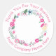 Pink floral thème conçu professionnellement merci autocollants y compris de belles fleurs de style de couronnes florales modèle que vous pouvez remplacer par votre propre logo d'entreprise, image, graphique ou quitter comme indiqué. Uniquement conçu avec du texte qui s'adapte à la forme du étiquette autocollant rond. Merci à vos clients, au personnel de vente, au personnel de bureau ou à vos associés.