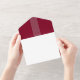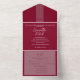 Faire-part de mariage tout-en-un moderne avec cartes postales RSVP perforées faciles à déchirer. Modifiez simplement le texte pour répondre à vos besoins. Couleur bordeaux avec motif floral. Utilisez la partie de l'adresse de retour du modèle si vous souhaitez que l'adresse soit imprimée directement sur la carte postale RSVP ou optez pour les étiquettes d'adresse de retour. Utilisez le modèle pour personnaliser.
