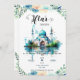 A watercolor floral Iftar dinner invitation with watercolor mosque and flowers and script calligraphy. The card is easy to customize with your wording, font, font color, paper shape options, and choice of paper types. The subtle ramadan scene and watercolor floral look stunning on the front, while the aqua blue watercolor flowers contrasting the backside make this iftar dinner invitation truly unique.