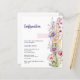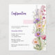 Arrière - plan blanc, avec une grande croix rose ornée de fleurs roses et violettes. Personnalisez et ajoutez le nom et les détails. 1 feuille = 1 invite imprimé bord à bord.