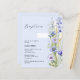 Arrière - plan bleu clair, avec une grande croix blanche décorée de fleurs bleues. Personnalisez et ajoutez le nom et les détails. 1 feuille = 1 invite imprimé bord à bord.