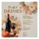 Bienvenue dans votre buvette de vacances avec cette affiche de menu du bar carré, imprimée sur du papier glacé. Dotée d'une toile de fond beige neutre et de flores d'eau douce. Customisez avec vos propres cocktails, mocktails, vins et autres boissons. Paire en toute transparence avec toute la suite de Dîner d'action de grâces Muted Florals pour une présentation de fête cohésive.