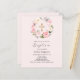 Arrière - plan douce, rose vif, décorée de fleurs roses et blanches aquarellées dans une couronne et une croix dorée. Personnalisez et ajoutez un nom et des détails. 1 feuille = 1 invite imprimé bord à bord.