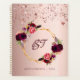 Un arrière-plan en or rose faux avec des étoiles de couleur or rose qui s'égouttent. Décoré d'un cadre géométrique en faux or et de fleurs aux couleurs bordeaux, rose et or rose, fleurons. Personnalisez et ajoutez vos lettres monogrammes, vos initiales et un texte, titre. Parfait pour l'école, le travail ou l'organisation de votre vie personnelle/familiale.