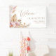 Boho floral pampas herbe baby shower bannière de bienvenue. Cette enseigne de bienvenue baby shower présente des tons rose, or et marron. Customisez avec le nom et la date du baby shower de la mère.