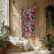 Des fleurs rose vif et bleu riche éclatent sur cette couverture colorée à motifs.