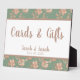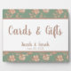Panneau de tablette personnalisable pour mariage caractéristiques écriture manuscrite police sur arrière - plan vert basilic avec cadre rose or floral et zone de texte blanc centre. Le texte "Cartes & Cadeaux" peut être customisé pour répondre à vos besoins "jour de", y compris "accueil" "réception" "cabine photo" "parking" "cocktails" etc.
