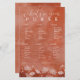Ajoutez le rire et la compétition amicale à votre douche nuptiale avec cette carte de jeu "What’s in Your Purse?" magnifiquement conçue. Doté d'un arrière - plan d'aquarelle rouille moderne et de fines fleurs blanches, les clients retirent les articles de leur sac à main pour les faire monter. La personne ayant le score le plus élevé gagne ! Un charmant brise-glace qui se marie parfaitement avec des célébrations sur le thème du boho, de la chute ou de la terre cuite.