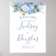 Ecran vert fleuri bleu Dusty hydrangea fleuris mariage signe de bienvenue