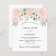 Un arrière - plan blanc décoré de fleurs blanches et rose vif. Personnalisez et ajoutez vos noms et les détails du mariage. Lettres de couleur noire. Retour : ajoutez vos comptes de médias sociaux, remplacez l'image de code QR par votre propre QR sur votre site mariage.