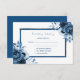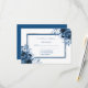 Une carte RSVP élégante pour un mariage avec des modèles pour répondre par date et nom. Un cadre faux argent et bleu classique avec des fleurs aquarellées, roses dans les tons bleus. Un arrière - plan blanc chic, texte bleu devant. Retour : arrière - plan bleu classique, lettres blanches.